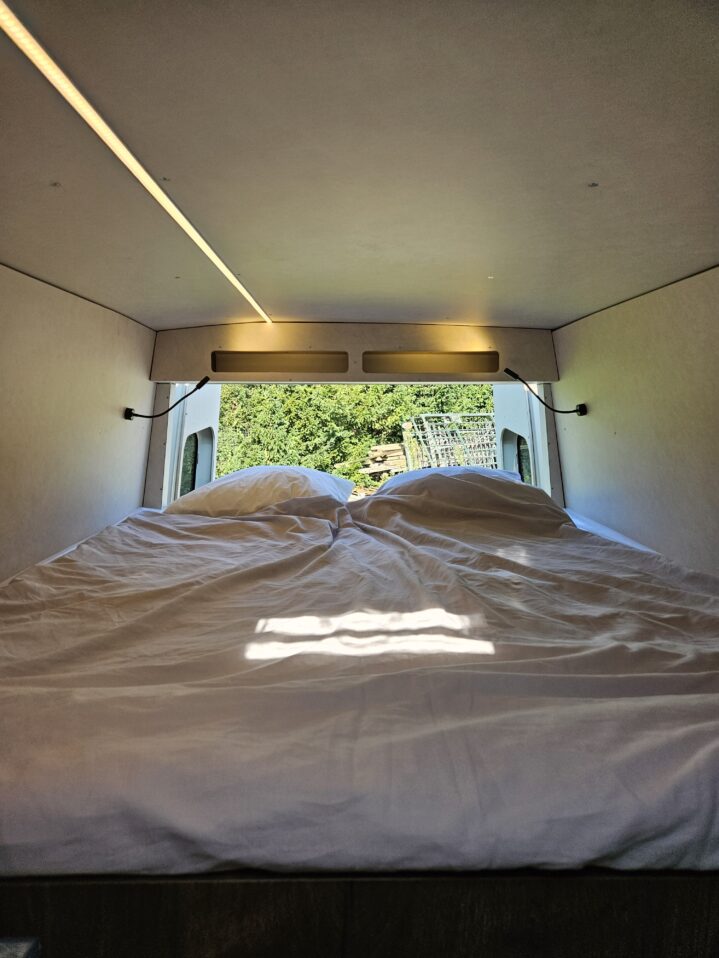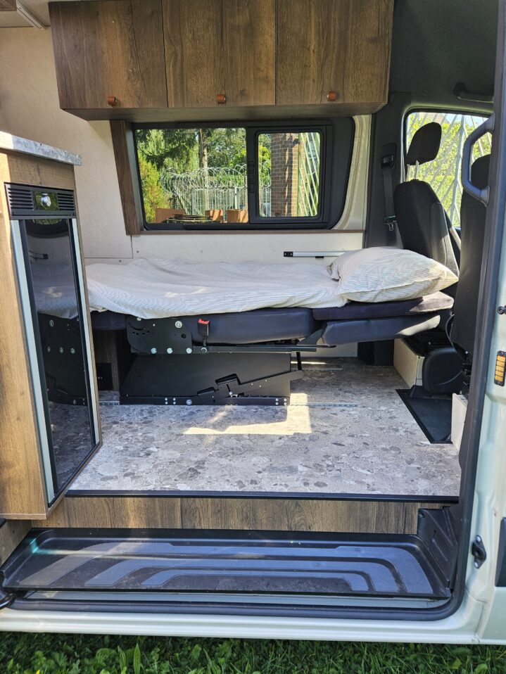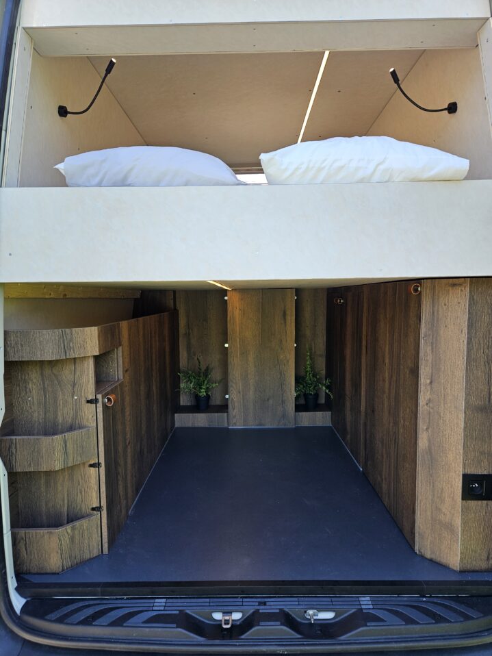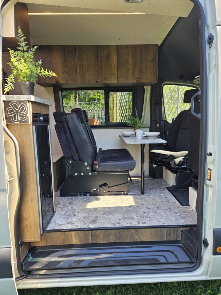 Ce véhicule est équipé de 4 places homologuées et d’une banquette convertible en lit pour des nuits reposantes. Sa soute à bagages spacieuse peut accueillir jusqu’à 4 vélos, idéale pour les escapades actives.