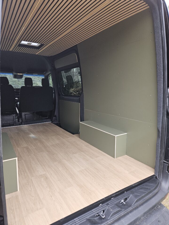 L’isolation intégrée assure un confort optimal en toute saison, préparant le van à accueillir les futurs équipements de la propriétaire.