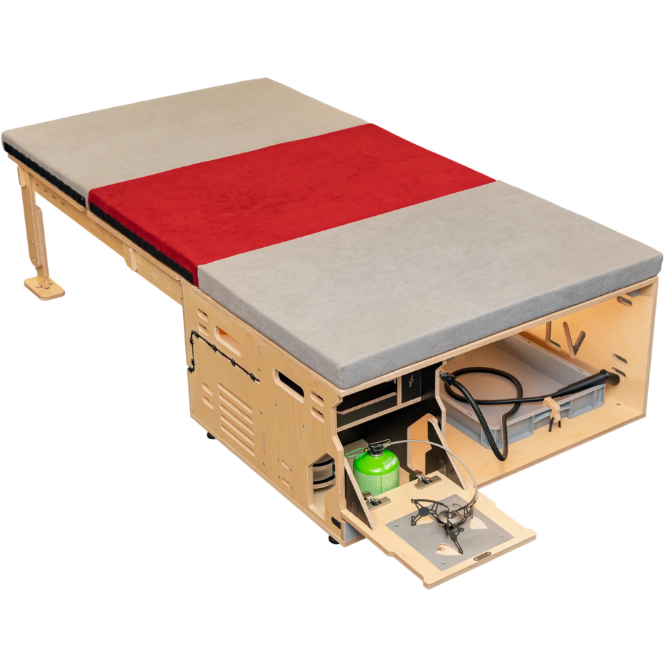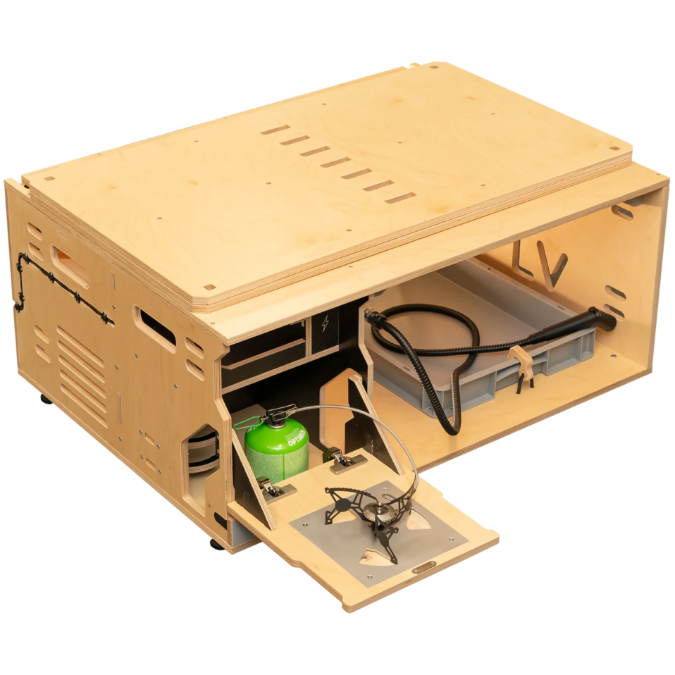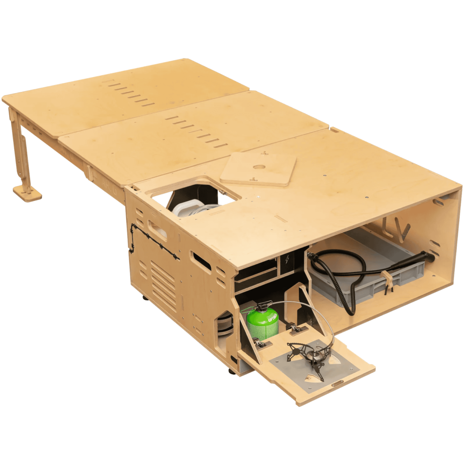 Idéale pour les passionnés de sports nautiques et les escapades au bord de l’eau. La Hive Box Sea Mini intègre tout le nécessaire pour camper directement depuis votre véhicule quotidien.